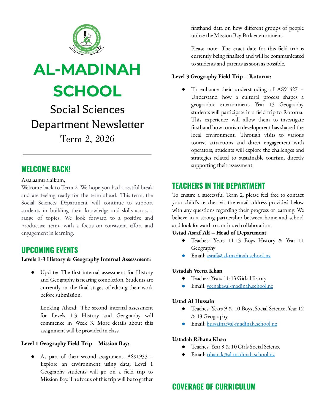 Department Newsletters